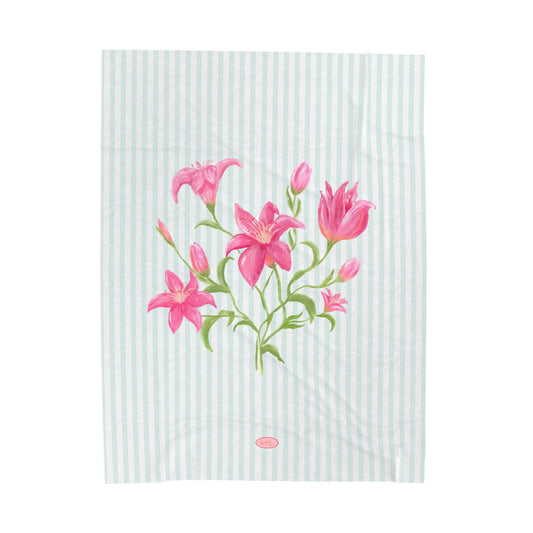 Lily Bloom Velveteen Blanket - Blue