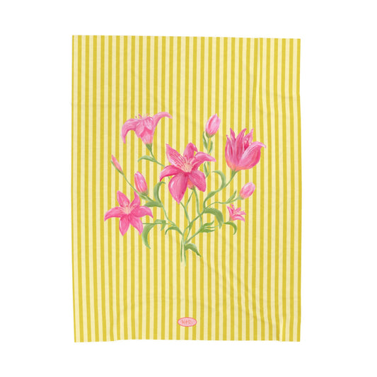 Lily Bloom Velveteen Blanket - Yellow