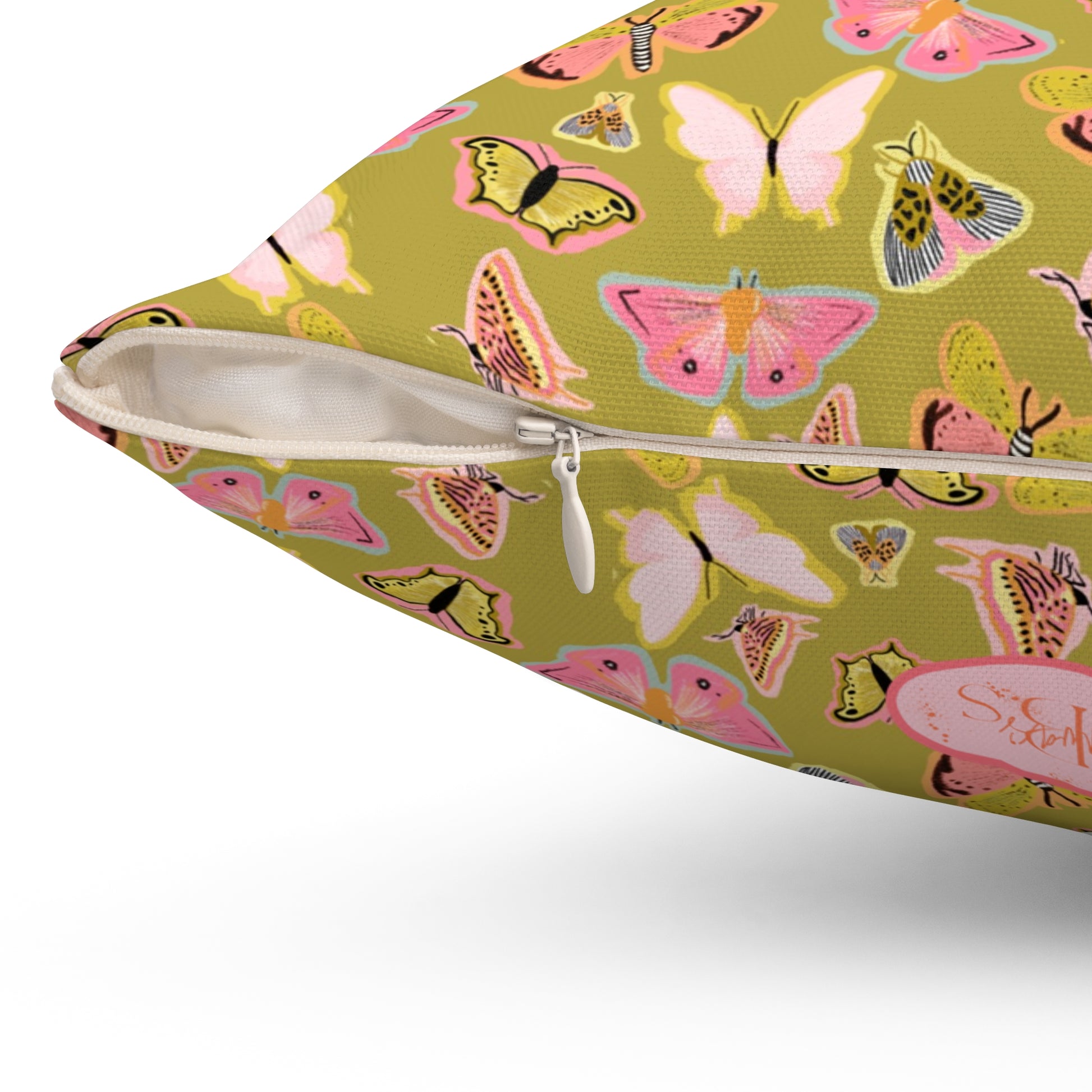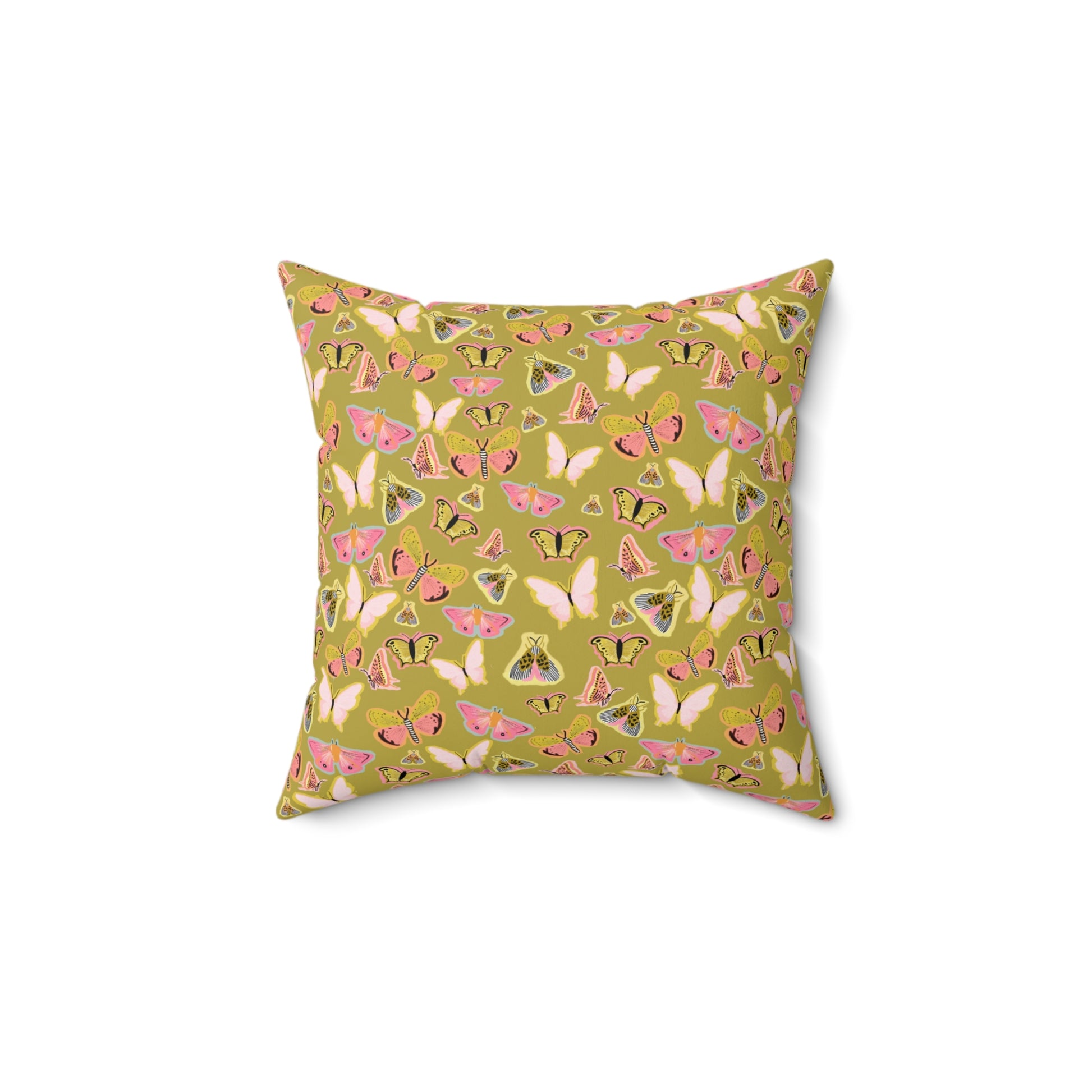 Soft, garden-day comfort with a vintage twist. This square pillow brings together fluttering moths and warm, earthy tones to create a calm, cozy accent for living rooms, reading nooks, or sunlit porches. The double-sided print keeps the pattern visible from every angle, while the concealed zipper keeps lines clean. Lightweight yet plump when assembled, the recycled-poly insert ships separately to reduce creases and then fills the cover for a lush, full look. It settles in effortlessly among layered textiles and adds a quiet, nature-inspired note to slow mornings and quiet evenings.