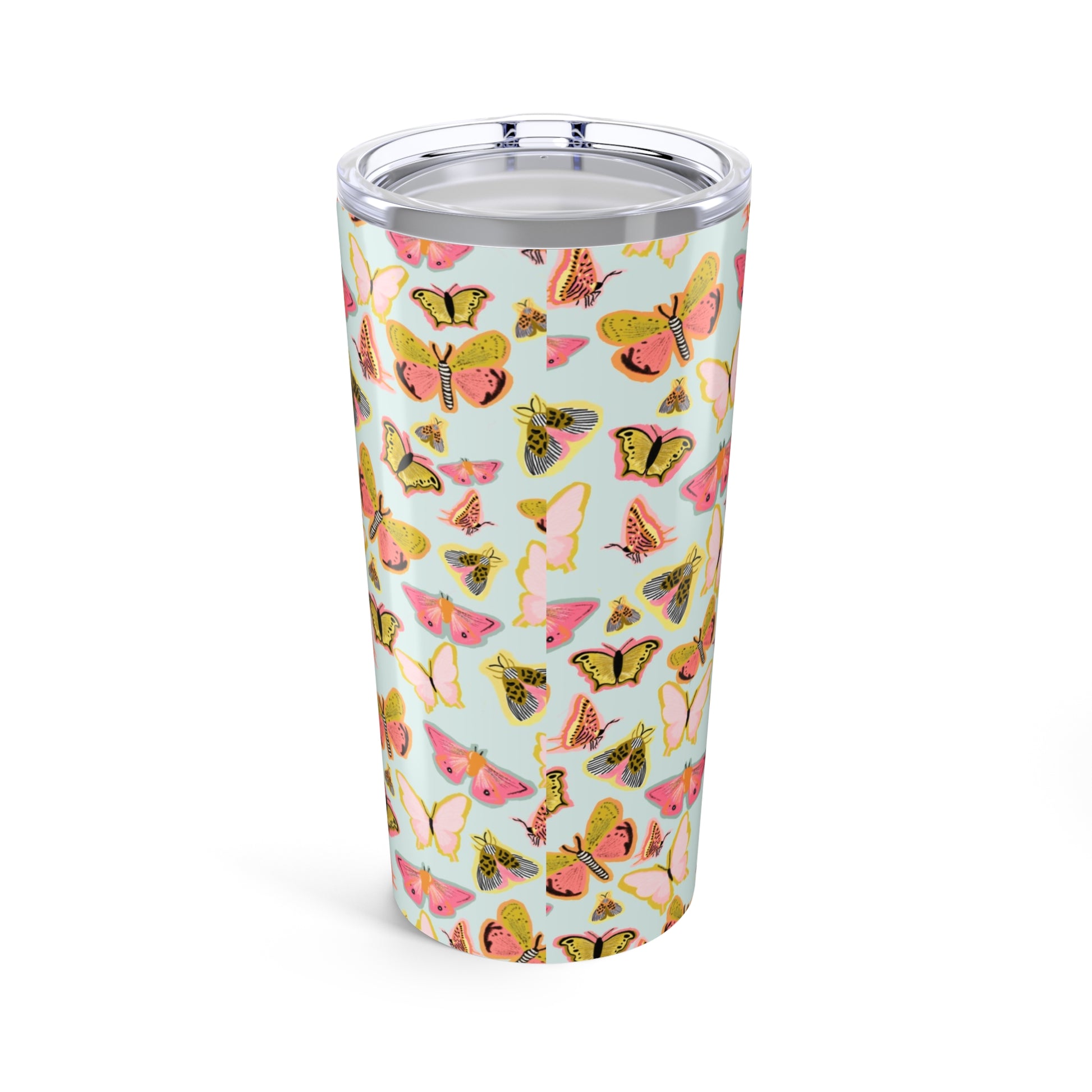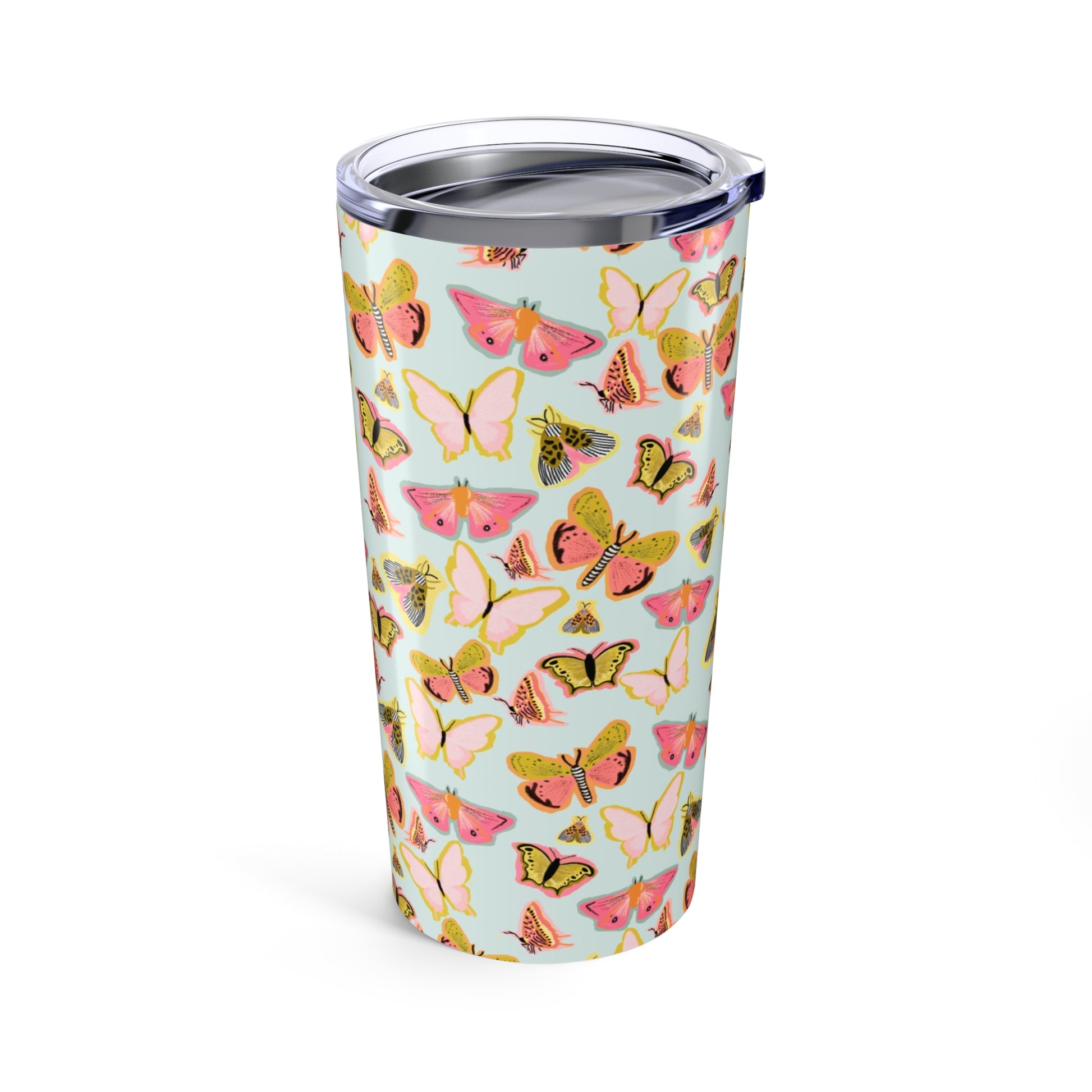 Lightweight, glossy and always ready to go — this 20oz stainless steel tumbler brings a soft, vintage butterfly pattern into your daily rhythm. The wraparound full-color print catches the eye while the vacuum-insulated double-wall body keeps morning coffee steaming and iced drinks chilled for hours. The clear push-on lid with a rubber gasket seals in temperature and prevents spills as you move between work, walks, and weekend errands. Rounded corners and a durable rust-resistant finish make it feel cared-for in your hands. Carry it to picnics, study sessions, or slow mornings on the porch — it adds a gentle, feminine touch to routines without fuss.