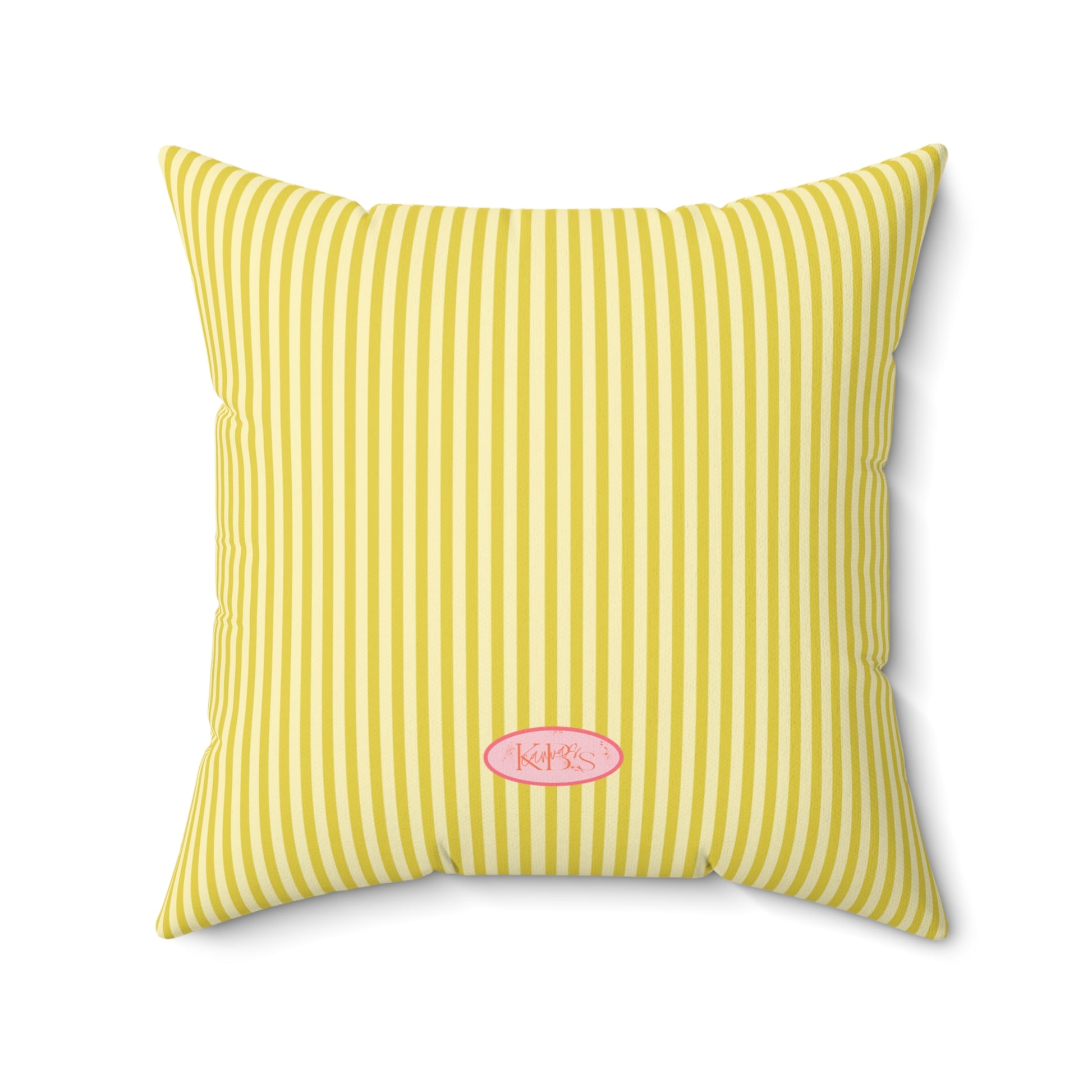 Sunlit and cheerful, this square throw pillow brings a touch of cottage-garden charm to any cozy corner. Soft yellow stripes form a warm backdrop for painterly pink lilies that feel hand-sketched and alive. Place it on an armchair, layer it on a bed, or nestle it in a reading nook to brighten slow mornings and quiet afternoons. The double-sided print keeps the look consistent from every angle, while the slightly overstuffed insert gives it a plump, inviting silhouette that begs to be leaned into.
